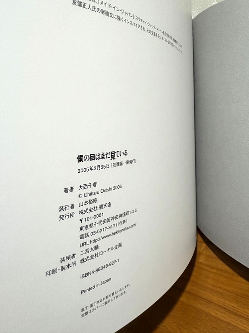 僕の目はまだ見ている 著者 大西千春 2005年 碧天社発行 初版 ハードカバー 後ろ扉にサイン入り 背上部に5ミリ、裏表紙上部1センチ、 表紙上部3センチサケ その他の状態は良好となっております