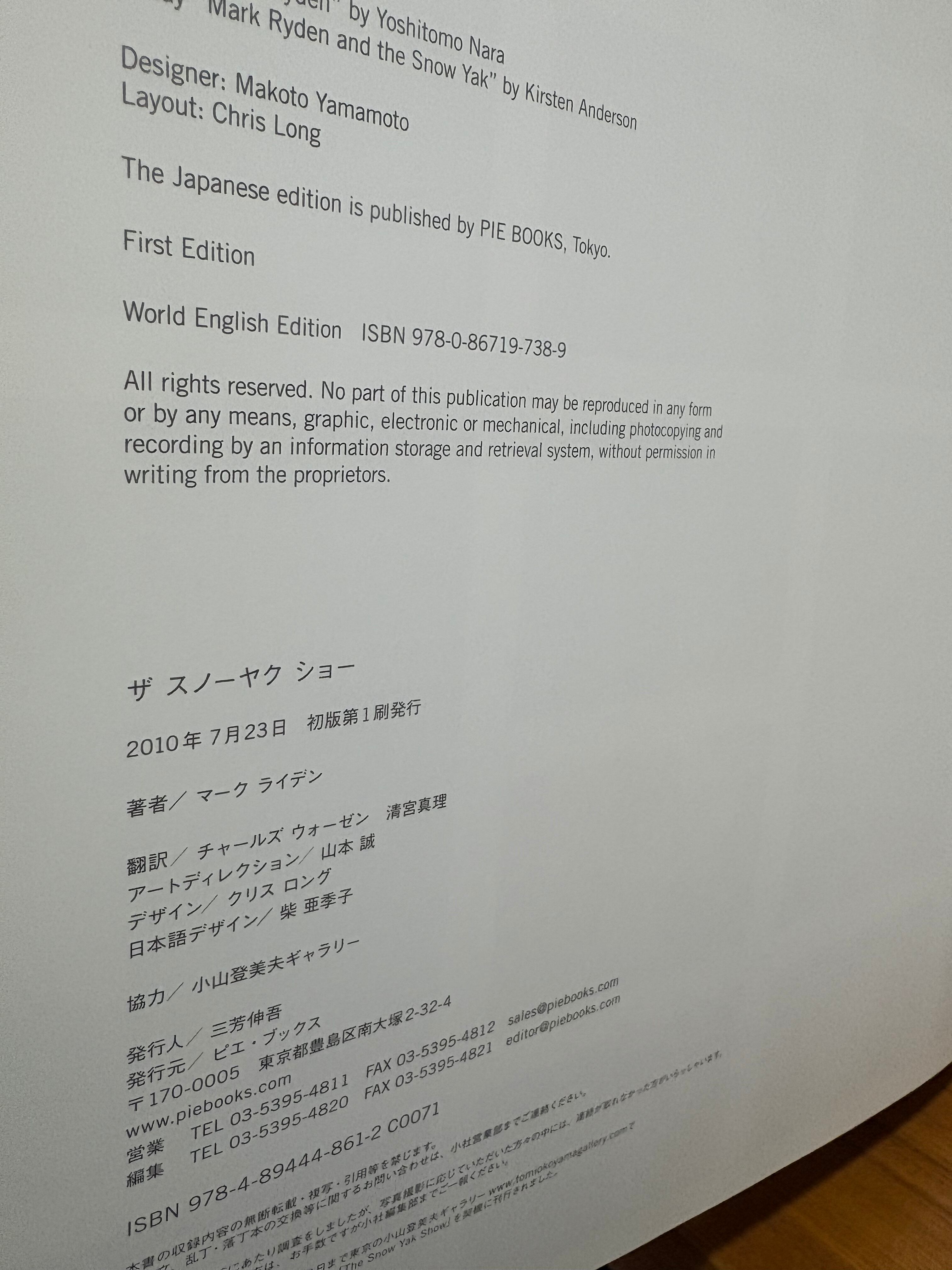 MARK RYDEN マーク ライデン THE SNOW YAK SHOW ザ スノーヤク ショウ 2010年 ピエ・ブックス発行 初版 ハードカバー 表紙、裏表紙、背の近辺にキバミ (アップ写真をご参照下さいませ) その他、状態は良好となります