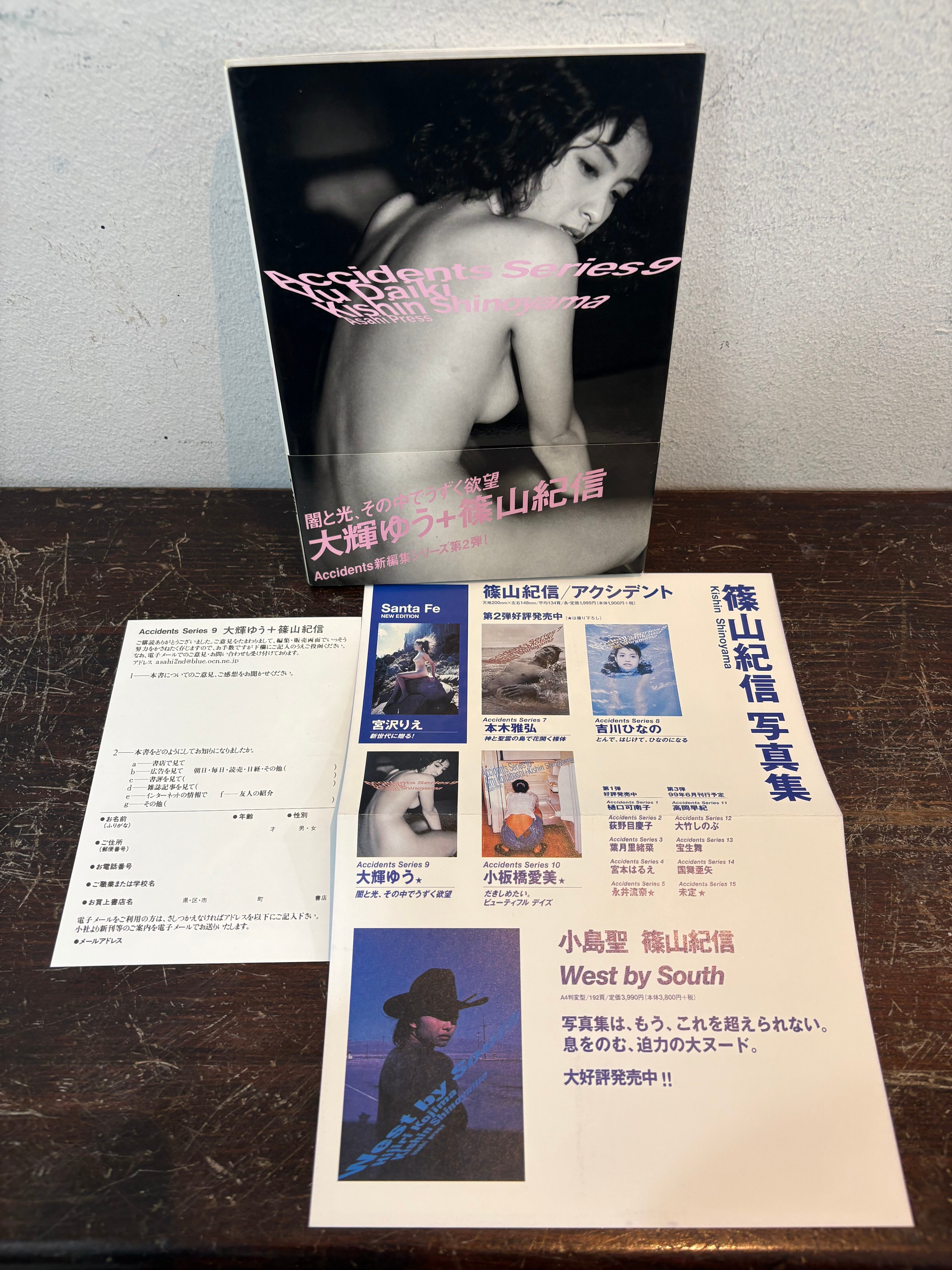 Accidents 9 大輝ゆう+篠山紀信 1999年 朝日新聞社発行 ソフトカバー 帯付き 表紙、裏表紙に小スレ程度にて 状態は良好となります